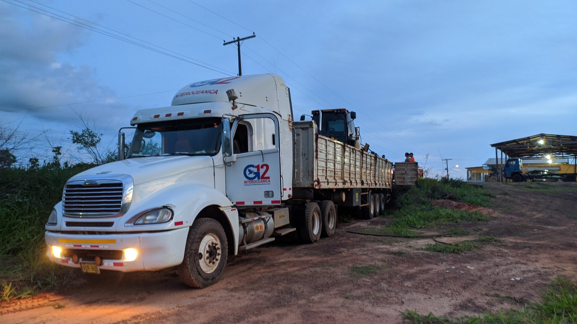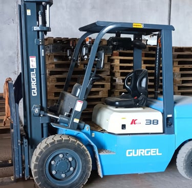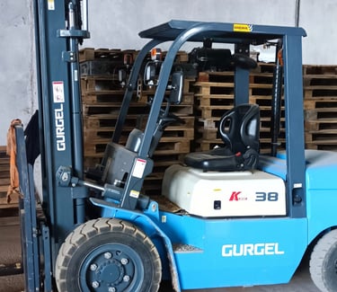 Operações com empilhadeira a diesel e estrutura adequada para troca ou reorganização de cargas.